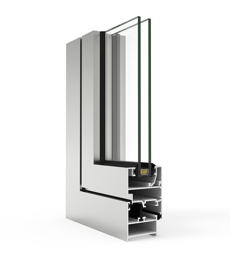 Cuenta con un sistema de triple junta de estanqueidad que nos permite obtener una gran protección frente a los agentes atmosféricos y un espesor de perfilería aligerado de 1,3 mm para ventanas y 1,4 mm para puertas.